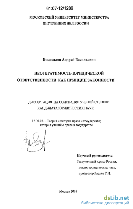 1.2. Место принципа неотвратимости юридической ответственности в системе принципов законности 40-74