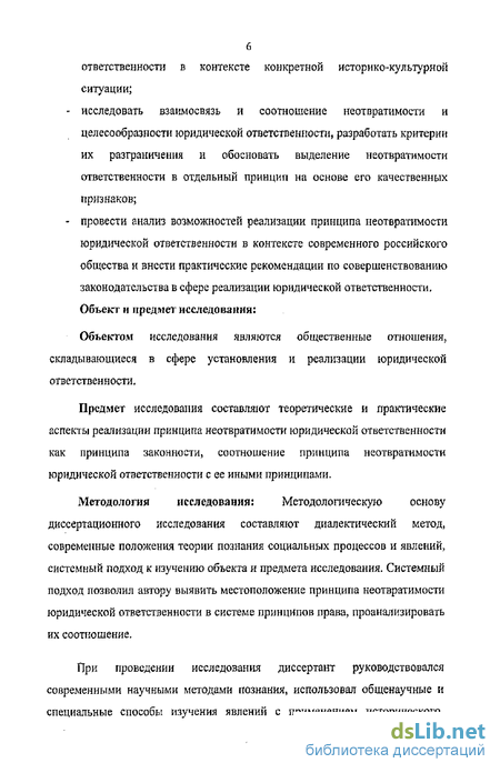 Цель исследования: Основной целью работы является научное осмысление и анализ неотвратимости юридической ответственности как принципа законности, комплексная научная разработка теоретических и практических проблем связанных с ней. Для достижения указанной цели были поставлены следующие задачи: