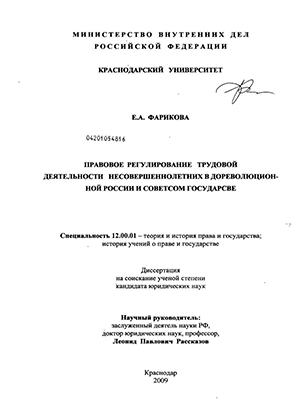 Теоретическая значимость диссертационного исследования Выводы и положения работы, впервые вводимые в научный оборот архивные материалы, позволяют более глубоко проанализировать роль и место трудовой деятельности несовершеннолетних в истории России, а также своеобразие их правового статуса По мнению автора, значительный интерес представляет рассмотрение связи эволюции правового регулирования трудовой деятельно-