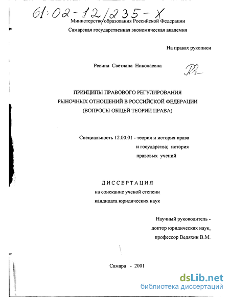 1990; Ведяхин В.М. Правовое регулирование рыночных отношений. Самара,