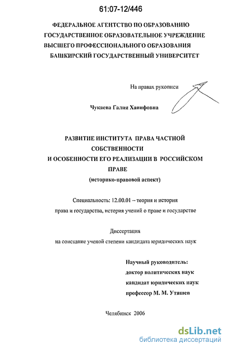 Глава 2. Особенности развития института права частной собственности в истории России 44