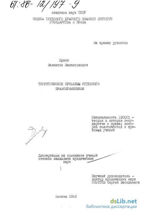 Нельзя, однако, не заметить, что отмеченные вопросы судебного правоприменения разработаны недостаточно. В связи с изложенным представляется актуальным исследовать названные проблемы судебного правоприменения с учетом современных достижений марксистско-ленинской философии, системных исследований, социального управления, теории информации, логики, общей теории права и отраслевых юридических наук. В целом все вышеизложенное и определило выбор темы настоящей диссертации, ее направленность и структуру.