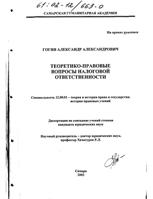 В теоретическом плане это углубляет наши представления о характере правового регулирования и механизме воздействия юридических норм на поведение членов общества. Данные вопросы получили некоторое освещение в исследованиях российских ученых-правоведов. Нами предпринята попытка рассмотреть существующую проблему в теоретическом плане и доказать на основе фактов, соответствующих нормативно-правовых актов и сопоставления различных точек зрения самостоятельность нового вида юридической ответственности - налоговой ответственности. Все изложенное и объясняет выбор темы диссертационного исследования.