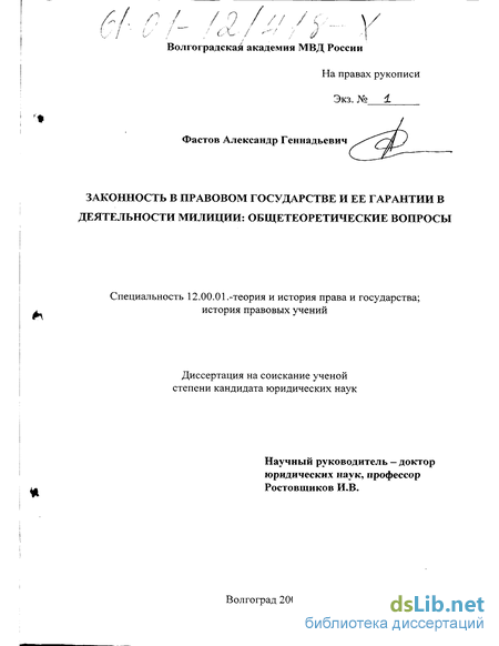 Между тем работа В. С. Афанасьева построена на основе Конституции 1977 г., до вступления России в Совет Европы, с вытекающими отсюда новыми обязательствами России в области прав человека. Н. Л. Гранат исследовала правовые и нравственно-психологические основы обеспечения законности исключительно на предварительном следствии. И. В. Ростовщиков рассматривал вопросы законности в органах внутренних дел не сами по себе, а преимущественно через призму обеспечения и защиты прав человека, как основной темы своего исследования. Не выделялась при этом и милиция с ее функциональной и организационной спецификой.