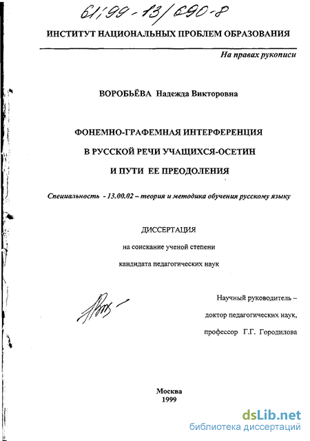 Тема данного исследования — «Фонемно-графемная интерференция в русской речи учащихся-осетин и пути ее преодоления» — выбрана в связи с несколькими факторами, объясняющими ее значимость и актуальность для современного этапа развития общества и уровня обучения русскому языку в национальной аудитории. (Письменная форма коммуникации для сегодняшнего времени становится все более значимой). Выпускники национальных групп учебных заведений должны быть носителями активного билингвизма, характеризующегося хорошим уровнем языкового образования. Их письменная и устная речь должна соответствовать орфоэпическим, орфофоническим и орфографическим нормам русского литературного языка