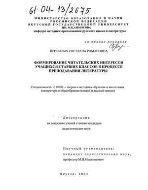 Предмет исследования - методика формирования читательских интересов учащихся старших классов в процессе преподавания русской литературы.
