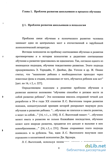 Глава 1. Проблема развития школьников в процессе обучения 8