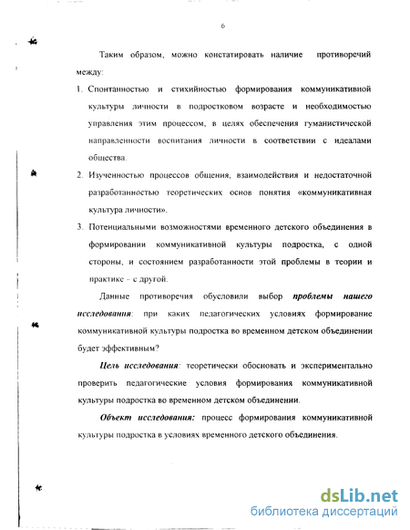 Данные противоречия обусловили выбор проблемы нашего исследования при каких педагогических условиях формирование коммуникативной культуры подростка во временном детском объединении будет эффективным9