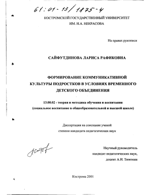 class1 ФОРМИРОВАНИЕ КОММУНИКАТИВНОЙ КУЛЬТУРЫ ПОДРОСТКОВ ВО ВРЕМЕННЫХ ДЕТСКИХ ОБЪЕДИНЕНИЯХ КАК СОЦИАЛЬНО-ПЕДАГОГИЧЕСКАЯ