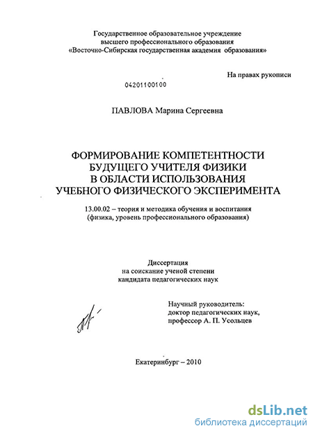 Глава 1. Формирование компетентности будущих учителей физики в области использования учебного физического эксперимента 12