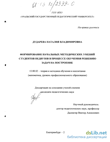 6. Дударева Н.В. Формирование методических умений будущих учителей // Механизм обеспечения гарантий качества профессиональной подготовки педагогических кадров: Сб. научных трудов / Урал. гос. пед. ун-т. Екатеринбург, 2001.-С. 82-84.