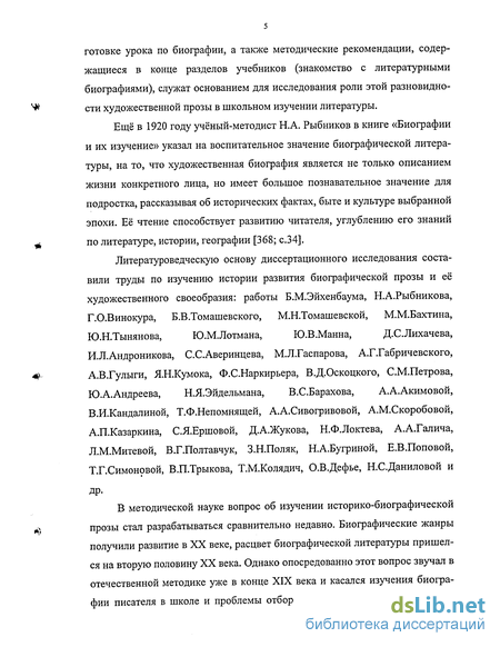Литературоведческую основу диссертационного исследования составили труды по изучению истории развития биографической прозы и её художественного своеобразия: работы Б.М.Эйхенбаума, Н.А.Рыбникова, Г.О.Винокура, Б.В.Томашевского, М.Н.Томашевской, М.М.Бахтина, Ю.Н.Тынянова, Ю.М.Лотмана, Ю.В.Манна, Д.С.Лихачева,