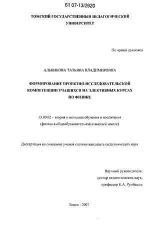 8 деятельность, способствующую формированию у них проектно-исследовательской компетенции па элективных курсах по физике.