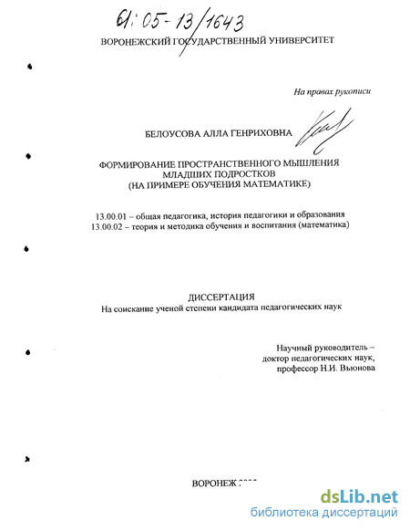 Однако специальных научных изысканий по проблемам формирования пространственного мышления младших подростков математическими средствами обучения до настоящего времени не проводилось.