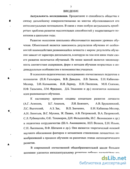 Актуальность исследования. Процветание и способность общества к своему дальнейшему совершенствованию во многом обусловливаются его интеллектуальным потенциалом. В связи с этим особую актуальность приобретает проблема развития мыслительных способностей у подрастающего поколения в школьные годы.