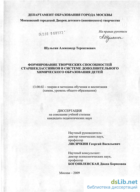 Предметом исследования являются методические принципы формирования творческих способностей у старшеклассников в процессе обучения химии, а также формы и методы проверки результатов образовательного процесса по химии в СДОД.