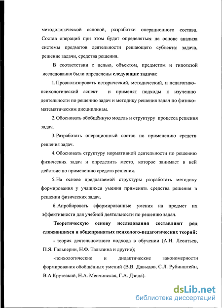 в совокупности методологических подходов, положений, составляющих теоретическую основу для выявления операционного состава обобщённых действий по решению физических задач;