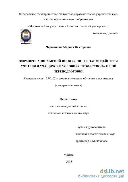Чернышова Марина Викторона. Формирование умений иноязычного взаимодействия учителя и учащихся в условиях профессиональной переподготовки: диссертация ... кандидата педагогических наук: 13.00.02 / Чернышова Марина Викторона;[Место защиты: Московский государственный лингвистический университет].- Москва, 2015.- 334 с.