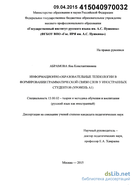 ГЛАВА 3. Педагогический эксперимент по реализации информационно образовательных технологий в аудитории ипостраппых студентов начального этапа обучения РКИ при обучении грамматической связп слов 126