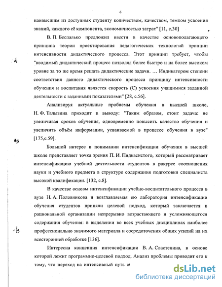 Большой интерес в понимании интенсификации обучения в высшей школе представляет точка зрения П. И. Пидкасистого, который рассматривает интенсификацию учебной деятельности студентов в ракурсе соотношения науки и учебного предмета в структуре содержания подготовки специалиста высокой квалификации. [132, с.8].