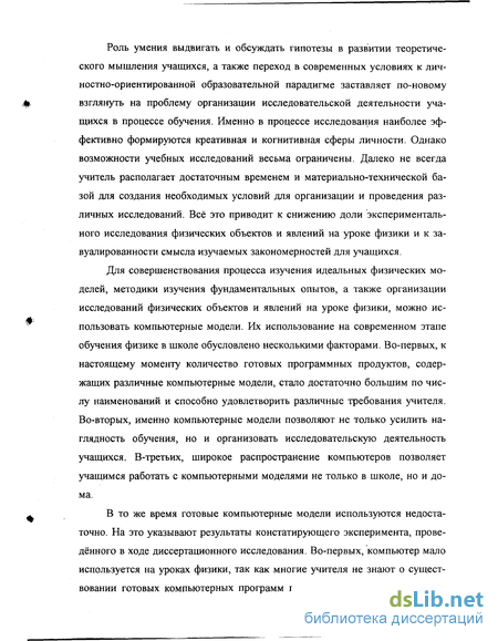 Так как моделирование является одним из основных методов исследования в физике, то именно развитие умений работы с моделями, исследовательских умений, которые включают такие действия как выдвижение гипотез, суждений и их анализ, позволит наиболее полно развить теоретическое мышление учащихся в процессе обучения физике.