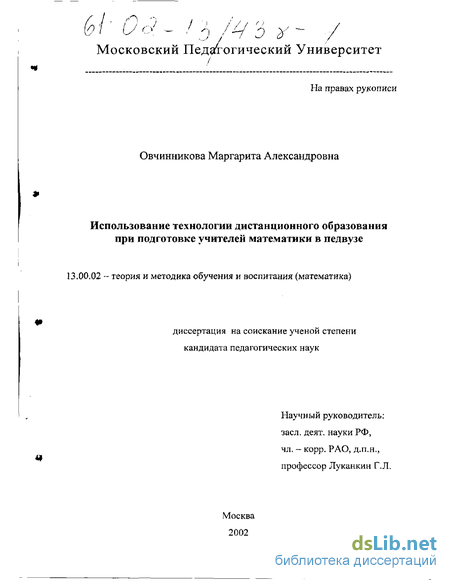 Актуальность проблемы диссертационного исследования определяется потребностью научного, дидактически обоснованного предоставления многочисленным слоям населения доступных и качественных образовательных услуг, требующих научного дидактического обоснования организации образовательного процесса ДО и использования в нем средств новых технологий, в том числе и при подготовке учителей математики в высших учебных заведениях. Недостаточно также разработано методическое обеспечение преподавания спец дисциплин в СДО.
