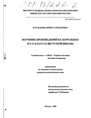 Предмет исследования - разработка методики изучения произведений В.Г. Короленко в 5-11 классах якутской школы.