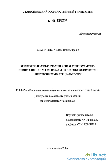 формированию социокультурной компетенции студентов лингвистических специальностей, базирующаяся на идеях компаративистики.