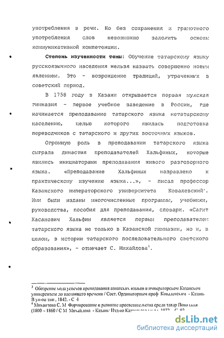 Степень изученности темы: Обучение татарскому языку русскоязычного населения нельзя назвать совершенно новым явлением. Это - возрождение традиций, утраченных з советский период.