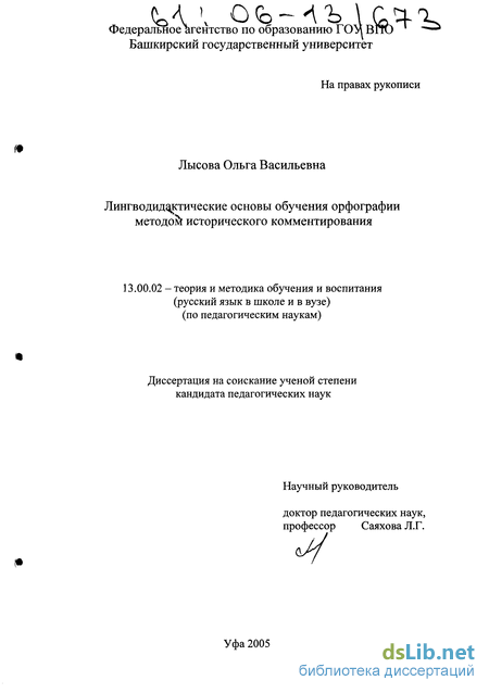 Настоящая диссертация выполнена в русле современных проблем лингводидактики и содержит результаты исследования, предметом которого явился историко-лингвистический комментарий фактов современной русской орфографии и включение его в виде исторического комментирования в школьный курс русского языка.
