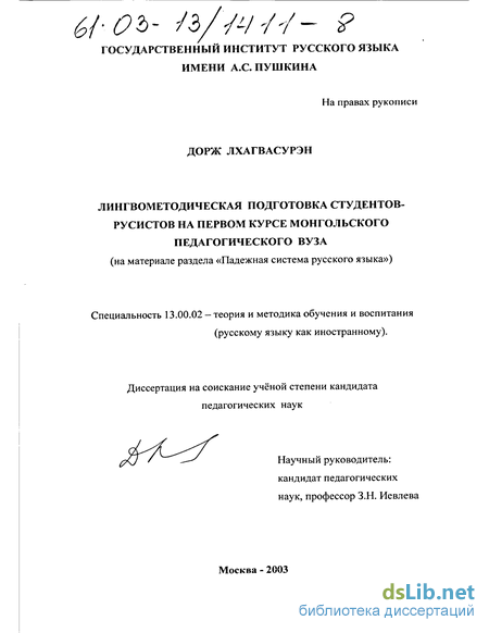 Методика преподавания русского языка как иностранного в Монголии в теоретическом и практическом планах разработана (см.: 169), но специфические особенности преподавания русского языка студентам-филологам, будущим учителям, изучены не на достаточном уровне. Существуют исследования по отдельным вопросам подготовки студентов-филологов первого года обучения в рамках курса русского языка (7, 134), ряд исследований посвящается методике работы над конкретными темами на уроках русского языка в общеобразовательных школах Монголии (например, 37). Но до сих пор отсутствуют специальные исследования, посвященные лингвометодической подготовке монгольских студентов-филологов, в том числе и на первом году обучения.