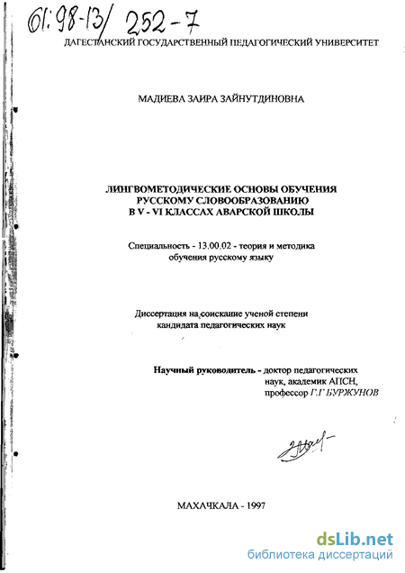 Неразработанность методики обучения русскому словообразованию в дагестанской национальной школе с аварским составом учащихся, ее роль и значение в формировании продуктивного аварско-русского двуязычия, повышении орфографической грамотности определили актуальность темы и выбор ее для диссертационного исследования.