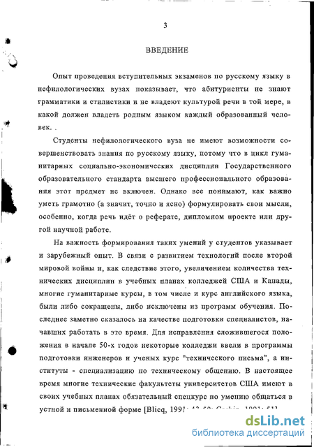 На важность формирования таких умений у студентов указывает и зарубежный опыт. В связи с развитием технологий после второй мировой войны и, как следствие этого, увеличением количества технических дисциплин в учебных планах колледжей США и Канады, многие гуманитарные курсы, в том числе и курс английского языка, были либо сокращены, либо исключены из программ обучения. Последнее заметно сказалось на качестве подготовки специалистов, начавших работать в это время. Для исправления сложившегося положения в начале 50-х годов некоторые колледжи ввели в программы подготовки инженеров и ученых курс "технического письма", а институты - специализацию по техническому общению. В настоящее время многие технические факультеты университетов США имеют в своих учебных планах обязательный спецкурс по умению общаться в устной и письменной форме [Blicq, 1991: 43-50; Corbin, 1991: 51].