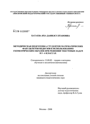 Предметом исследования является методическая подготовка студентов математических факультетов педвузов к обучению учащихся 5-6 классов использованию геометрических образов при решении текстовых задач.