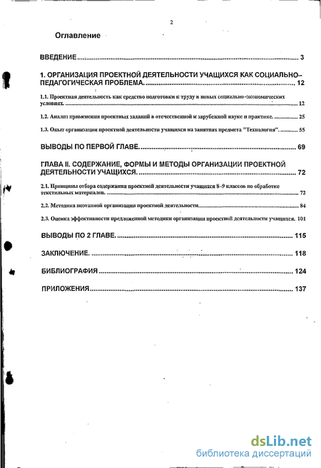 настоящего диссертационного исследования: «Методические основы организации проектной деятельности учащихся 8-9 классов в процессе обучения технологии обработки текстильных материалов».