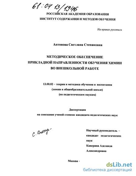 Объект исследования - процесс обучения химии в основной школе. Предмет исследования - методическое обеспечение прикладной направленности обучения химии во внешкольной работе.