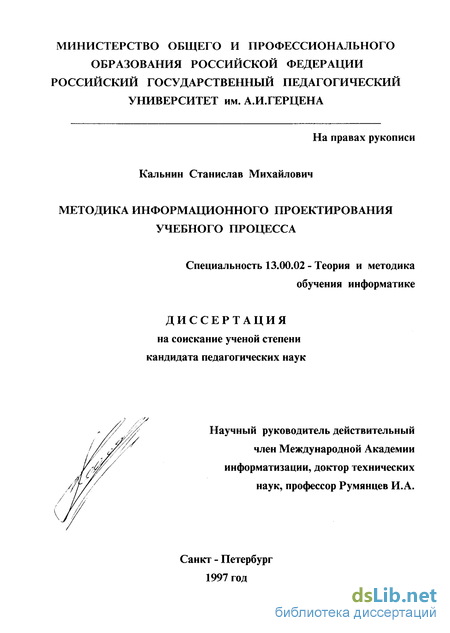 области информатизации систем административного управления образованием чрезвычайно малочисленны. Среди имеющихся систем информационного обеспечения управленческого процесса, они либо не имеют непосредственного отношения к организации процесса обучения [85], либо решают частные задачи [1], а систем решающих проблему автоматизированного планирования, обслуживания и контроля учебного процесса в педагогическом ВУЗе практически нет. Вместе с тем в национальном докладе Российской Федерации "Политика в области образования и новые информационные технологии" на втором Международном Конгрессе ЮНЕСКО "Образование и информатика" отмечается [65], что "основными механизмами, обеспечивающими крупномасштабную реформу системы образования в России являются: система регионализации образования; система управления образованием, обеспечивающая его непрерывность, повышение качества образовательных программ путем реализации принципов фундаментализации, целостности и ориентации на интересы развития личности. А одним из важнейших механизмов, затрагивающих все основные направления реформирования образовательной системы, является информатизация, которая рассматривается как необходимое условие информатизации общества в целом. Основой перехода от индустриального этапа развития общества к информационному являются новые информационные технологии (НИТ)" [69].