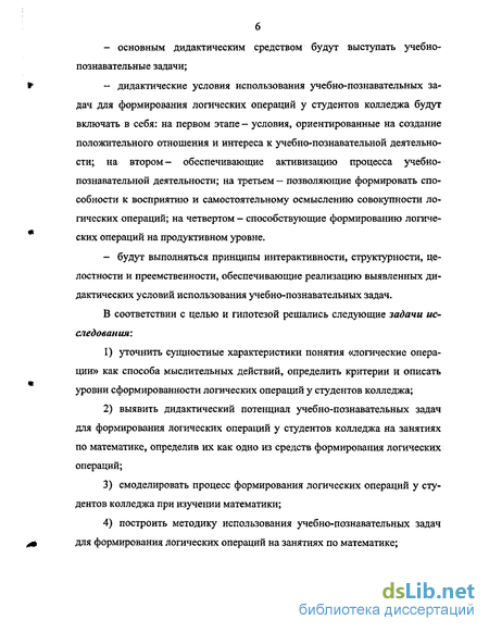 Исходя их вышесказанного, была сформулирована тема исследования: «Методика использования учебно-познавательных задач для формирования логических операций у студентов колледжа в процессе обучения математике» и определены объект, предмет, цели и задачи исследования.
