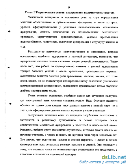 Глава 1. Теоретические основы аудирования полемических текстов 9