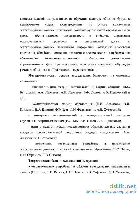 Глава 1. Теоретические основы обучения культуре общения переводчиков сферы юриспруденции на основе использования телекоммуникационных технологий