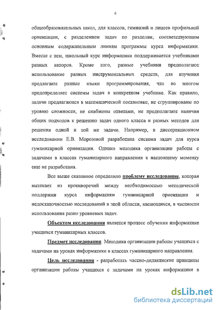 Цель исследования - разработать частно-дидакхиские принципы организации работы учащихся с задачами на уроках информатики в классах гуманитарного направления и на ее основе разработать соответствующую методику,