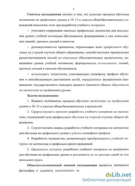 7 Гипотеза исследования состоит в том, что качество процесса обучения математике на профильном уровне в 10-11-х классах общеобразовательных учреждений повысится, если при разработке учебного материала: