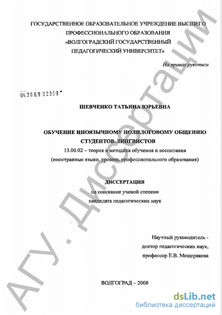 Все вышесказанное обусловило выбор темы диссертации: «Обучение иноязычному полилоговому общению студентов-лингвистов».