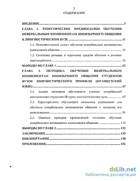 В первой главе рассматриваются теоретические предпосылки обучения умению декодировать невербальные компоненты общения в целях развития коммуникативной компетенции студентов языкового вуза. Выделяются классификации основных компонентов неречевого поведения, рассматриваются их специфические характеристики, которые необходимо учитывать в обучении, анализируются основные признаки неречевого поведения исследуемой лин-гвокультурпой общности.