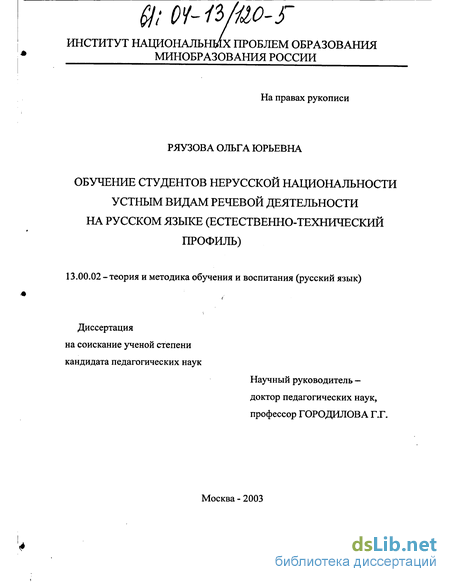 Предметом исследования является методика обучения нерусских студентов-экологов устным видам речевой деятельности.