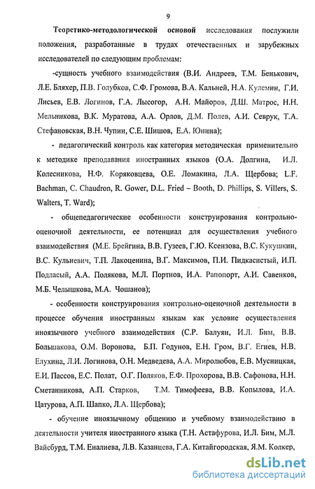 особенности конструирования контрольно-оценочной деятельности в процессе обучения иностранным языкам как условие осуществления иноязычного учебного взаимодействия (СР. Балуян, И.Л. Бим, В.В. Большакова, О.М. Воронова, Б.П. Годунов, Е.Н. Гром, В.Г. Егиев, Н.В. Елухина, Л.И. Логинова, О.Н. Медведева, А.А. Миролюбов, Е.В. Мусницкая, Е.И. Пассов, Е.С Полат, О.Г. Поляков, Е.Ф. Прохорова, В.В. Сафонова, Н.Н. Сметанникова, А.П. Старков, Т.М. Тимофеева, В.В. Копылова, И.А. Цатурова, А.П. Шапко, Л.А. Щербова);