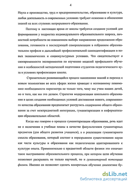 Как показало диссертационное исследование, решение проблемы качества фундаментального образования в профильных классах и совершенствование педагогических информационных технологий в школе и вузе вызывает наименьшую удовлетворенность, как преподавателей, так и учащихся. Высокую потребность в разработке научно-методического обеспечения и комплекса дидактических средств к новым учебным курсам и программам испытывают учителя физики. В то же время проблема обучения физике в гуманитарных классах, ее методические аспекты имеют не достаточную научную разработку, о чем свидетельствуют современные публикации в данной об-