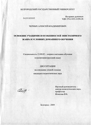 Достоверность и объективность результатов исследования обеспечены привлечением разнообразной научно-методической литературы по теме исследования, применением методов, адекватных объекту, предмету, цели и задачам исследования, личным опытом обучения русскому языку детей с ограниченными физическими возможностями, экспериментальной проверкой разработанной автором методической технологии обучения эпистолярному жанру данной категории школьников.