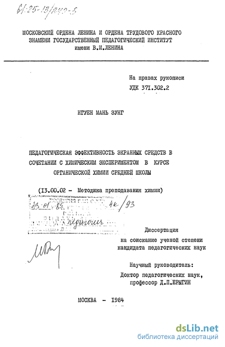 Но разработка вопросов методики эффективного использования экранных пособий в курсе органической химии средней школы в сочетании с химическим экспериментом остается далеко не решенной, это особенно относится к Вьетнамской школе.