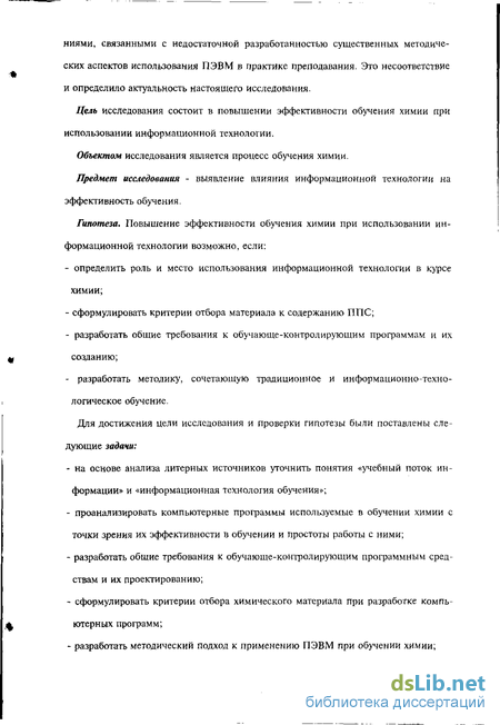 Цель исследования состоит в повышении эффективности обучения химии при использовании информационной технологии.